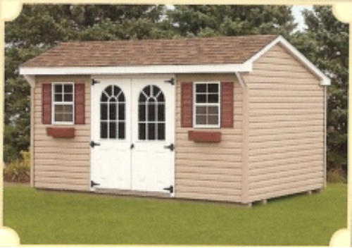 shutters, flower boxes and overhead garage doors. Any size shed can be prefabricated and put