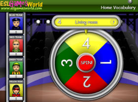 This is a classroom game where you spin the wheel and students answer questions to score points.